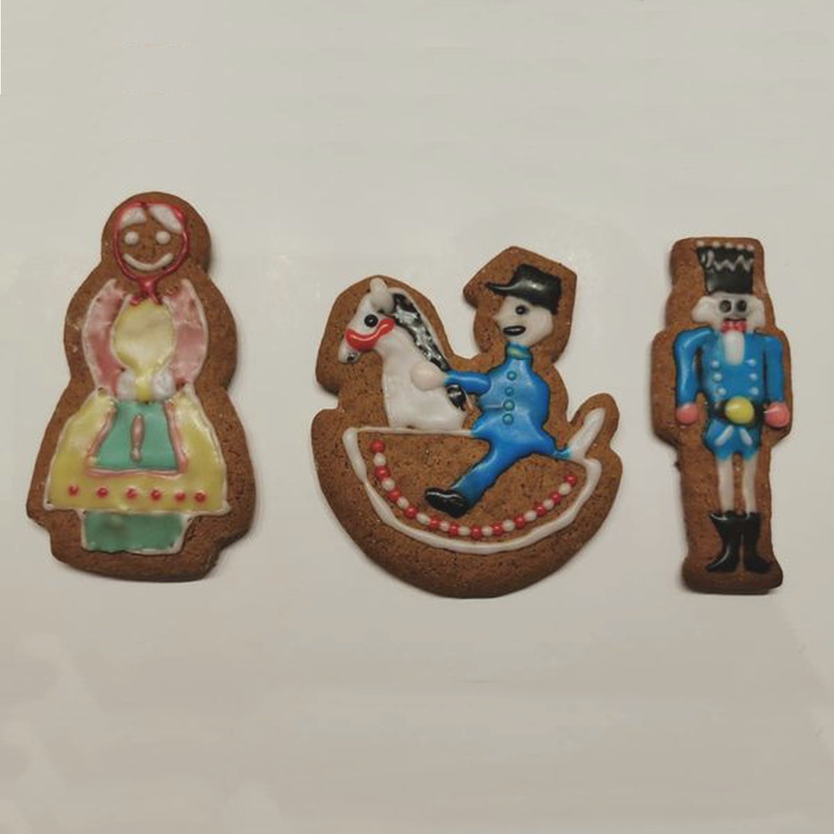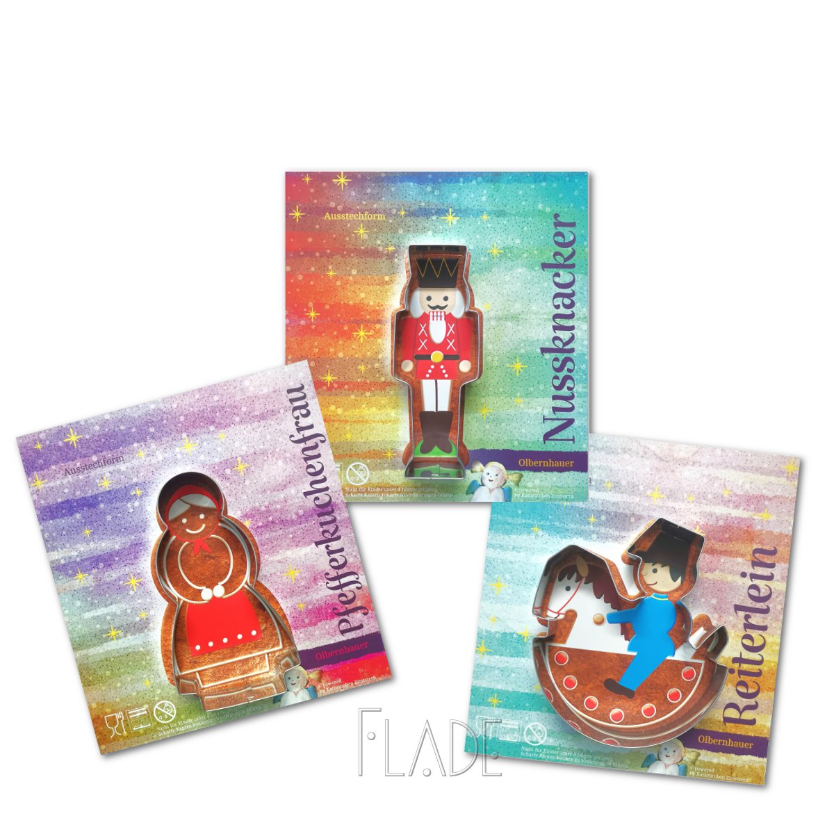 Die drei Olbernhauer Originale Reiterlein, Nußknacker und Pfefferkuchenfrau gehören zusammen. Seit genau 70 Jahren stehen sie in der Adventszeit auf dem Olbernhauer Marktplatz. Zur Freude der Olbernhauer und ihrer Gäste. Nun können sie auch als süßes Ebenbild ihrer großen Vorbilder bei Euch zuhause stehen. Süß und bunt und zum Anbeißen. Man kann sie alle “zum Fressen gern” haben, wie es in dem berühmten Weihnachtslied heißt. Viel Spaß beim Backen, Verschenken und Selberessen!