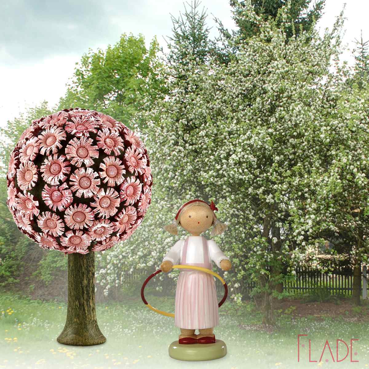 Schätzen Sie mal: Wie viele gedrechselte Blüten braucht man, um einen so prächtigen Blütenbaum erstrahlen zu lassen? Ich verrate es Ihnen, es sind ungefähr 80 Stück, die wir am Schluss mit einem weißen Farbhauch überziehen. Wie eine einzelne Blüte gedrechselt wird, zeige ich Ihnen bei einem unserer Werkstatt-Tage. Es ist eine kleine Kunst und für alle immer wieder ein Erlebnis. Auch für mich.