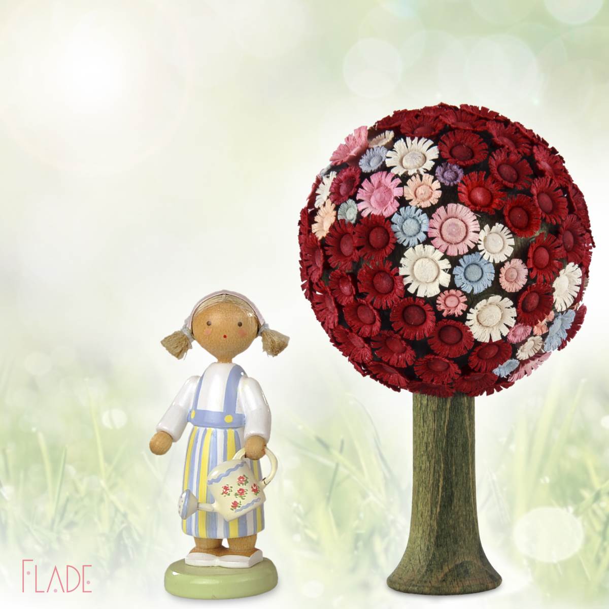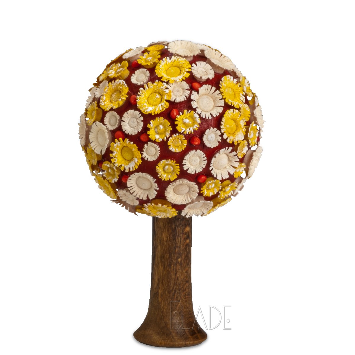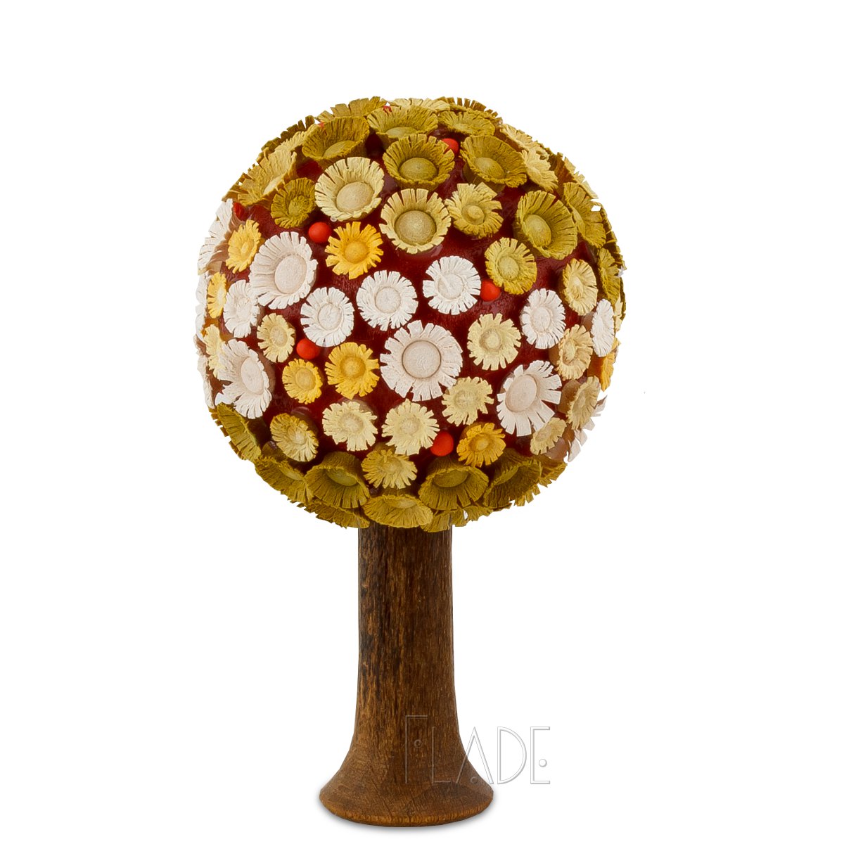 Schätzen Sie mal: Wie viele gedrechselte Blüten braucht man, um einen so prächtigen Blütenbaum erstrahlen zu lassen? Ich verrate es Ihnen, es sind ungefähr 120 Stück. Wie eine einzelne Blüte gedrechselt wird, zeige ich Ihnen bei einem unserer Werkstatt-Tage. Es ist eine kleine Kunst und für alle immer wieder ein Erlebnis. Auch für mich.