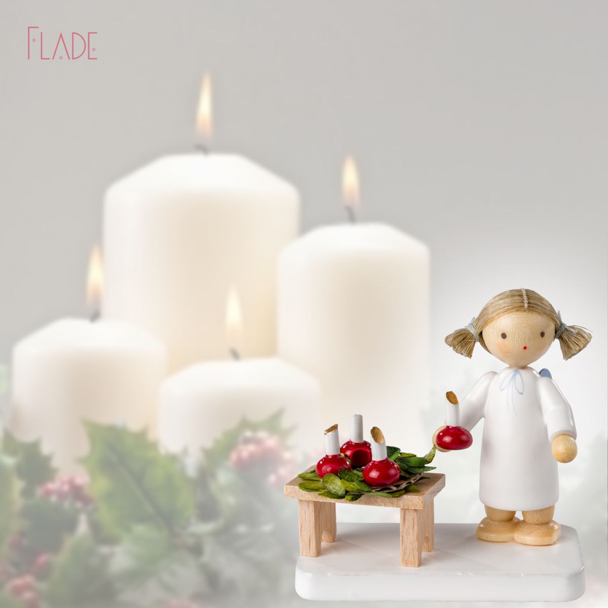 Einen Adventskranz kann man aus dem verschiedensten Grün winden. Aus Tannen-, Fichten- oder Lebensbaumzweigen zum Beispiel oder aus der stacheligen Stechpalme mit den leuchtend roten Beeren. Meine Lieblings-Adventskränze sind aus dem immergrünen Buchsbaum gewunden. Das ist nicht ganz erzgebirgische Art, aber es ist nun mal meine. Und deshalb steckt mein Engelchen die vierte Kerze auf einen Adventskranz aus Buchsbaumzweigen.