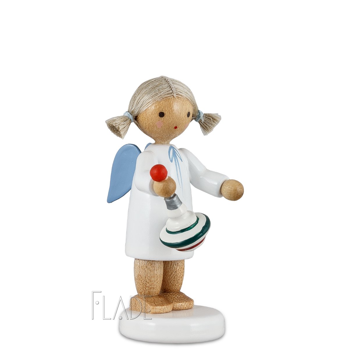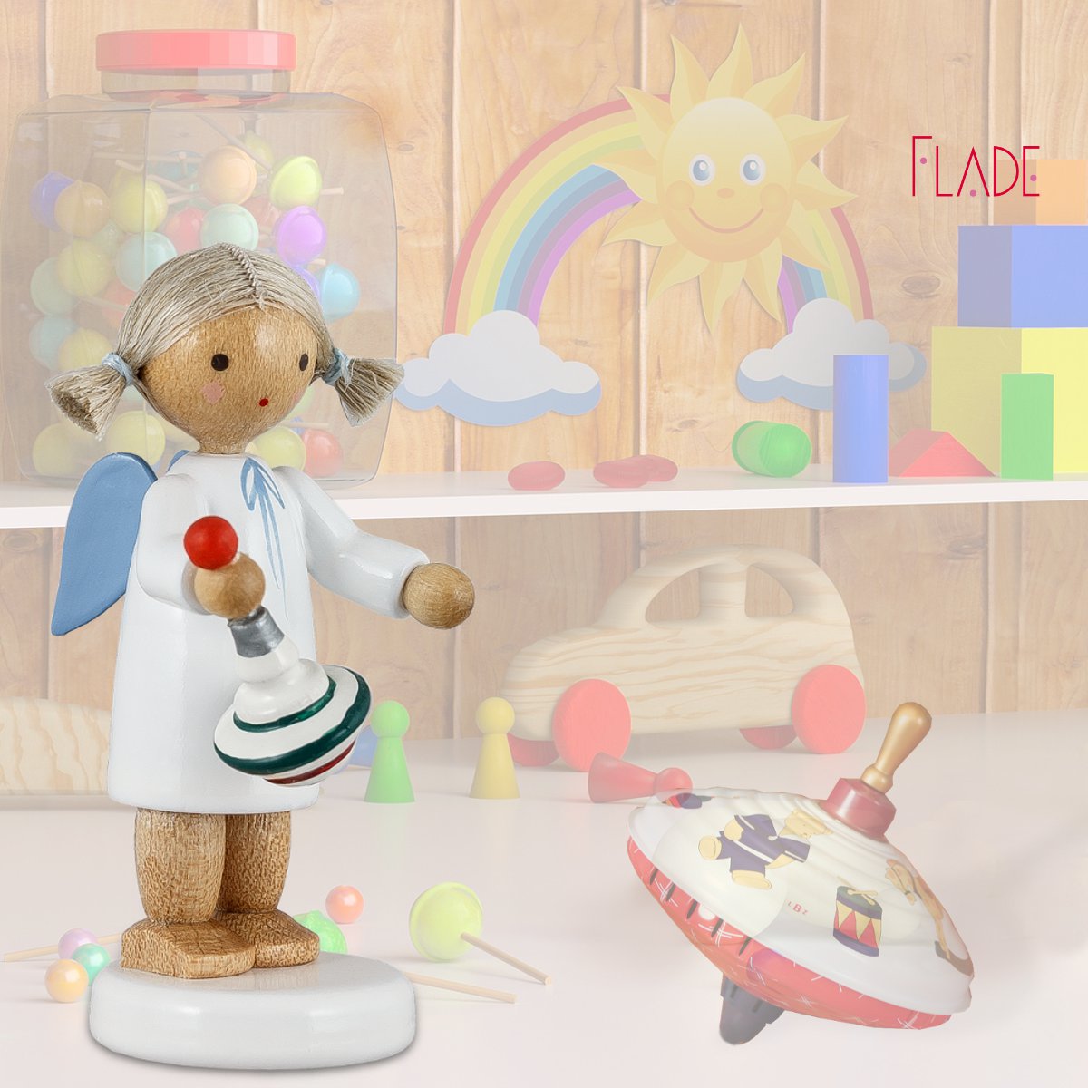 Es macht ein ganz bestimmtes Geräusch, wenn man den Brummkreisel “aufzieht”. Ein blechernes, schepperndes Geräusch. Und es braucht schon etwas Übung, den Brummkreisel zum Tanzen und zum Brummen zu bringen. Und auch ein wenig Kraft. Aber wenn man es geschafft hat, dann verwandelt sich das Brummen, und je schneller sich der Brummkreisel dreht, desto lauter „singt“ er. Ob das Engelchen genug Kraft und Geschicklichkeit hat, den Brummkreisel singen zu lassen?