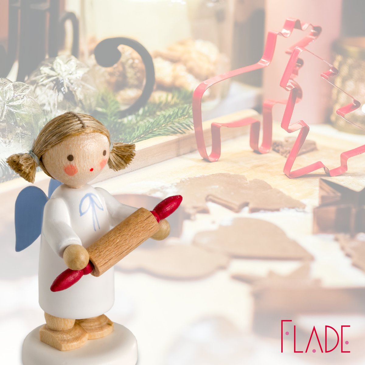 So heißt es in einem sehr bekannten Weihnachtslied. Aber bevor es Naschereien geben kann, muss erst einmal der Teig mit dem Nudelholz ausgerollt werden, die Plätzchen ausgestochen, verziert und gebacken werden. Und das ist gar nicht so einfach, vor allem, wenn man so klein ist, wie ein FLADE Engelchen…