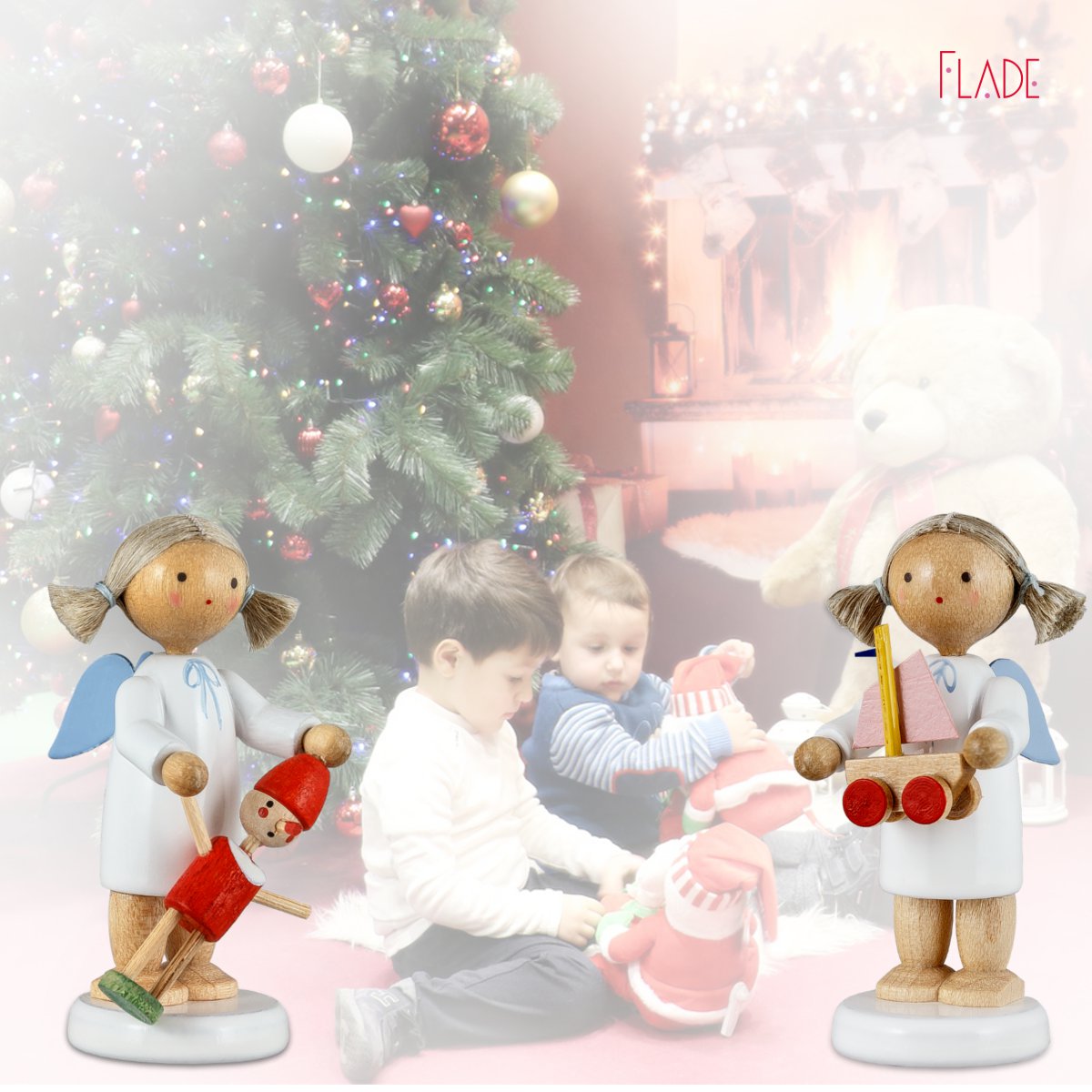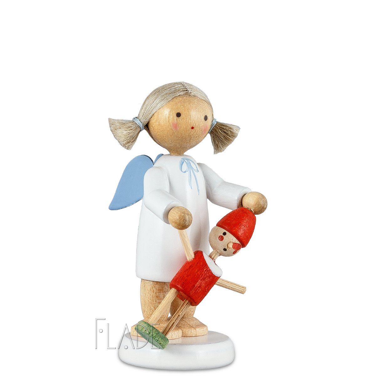 Dass Spielzeug lebendig wird in der Nacht, das wissen wir alle. Unsere kindliche Fantasie hat uns das glauben gemacht und etliche Kinderbuchautoren. Und wenn es Weihnachten wird, erinnern sich auch die längst erwachsenen Kinder an Buratino, an Urfin und seine Holzsoldaten, an Bärli Hupf oder eben an den Pinocchio. Es ist wohl die berühmteste Geschichte um eine Holzpuppe, die lebendig wird und gefährliche Abenteuer erlebt. Unser Engelchen trägt einen Pinocchio in der Hand und hält ihn ganz,ganz fest.