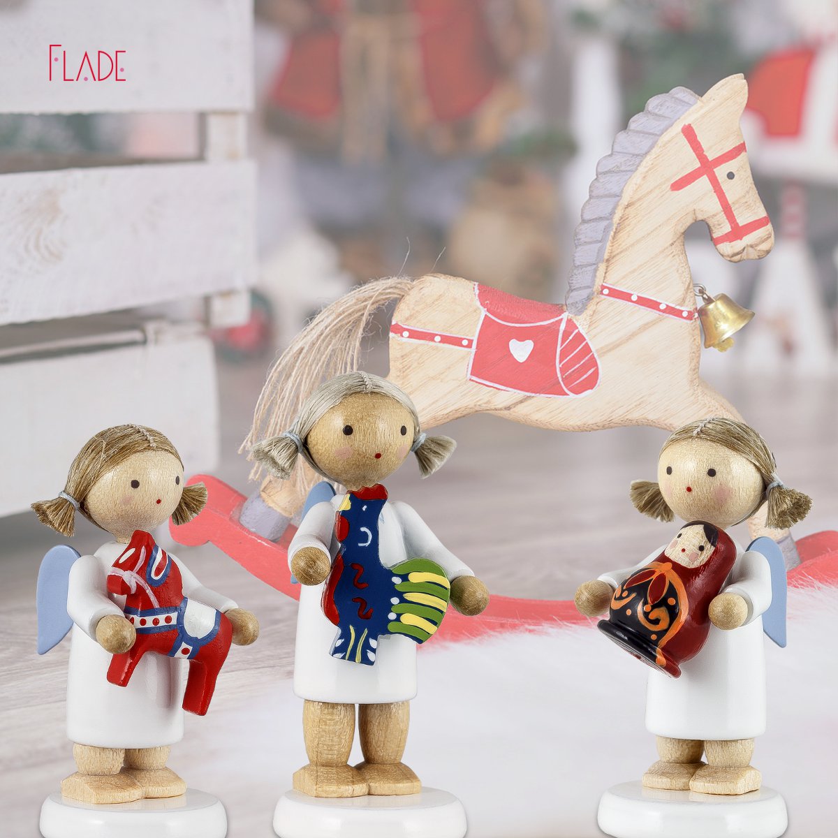 Das schwedische Pferdchen steht gleich neben dem großen und buntbemalten Hahn. Rot ist es und ganz fantasievoll bemalt. Schon immer haben Kinder mit Tieren aus Holz gespielt. Mit großen und mit kleinen, und im Erzgebirge wurden viele von ihnen hergestellt. Genauso sehr liebe ich aber das farbenprächtige Holzspielzeug aus anderen Ländern. Meinem Engelchen scheint es ebenso zu gefallen.