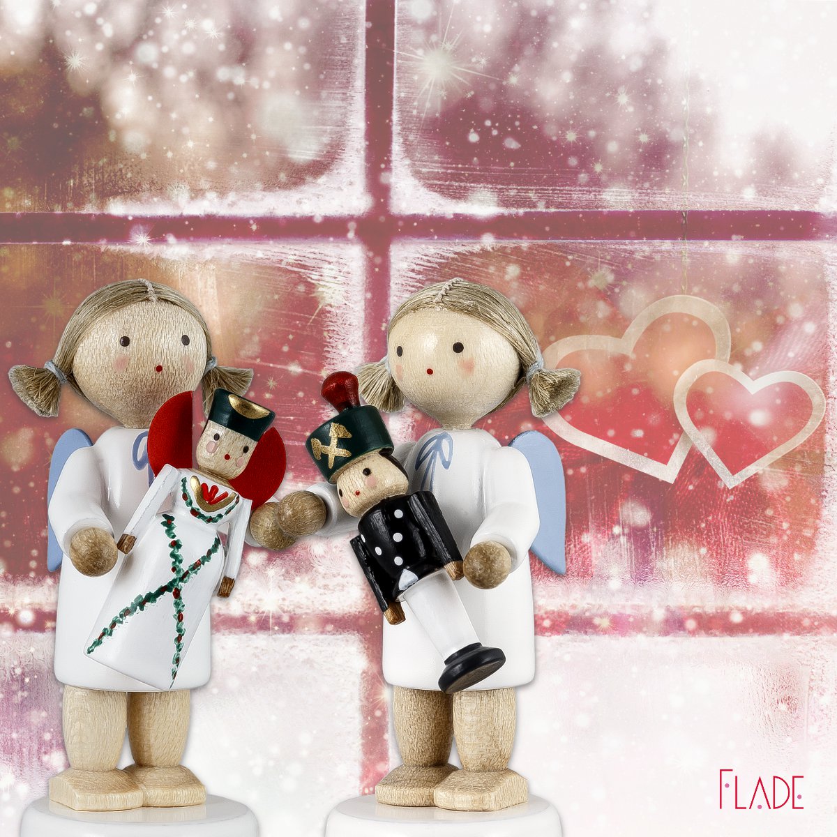 Der Seiffener Engel ist einer der ältesten Volkskunsterzeugnisse. Er ist gedrechselt und trägt ein festliches aber bäuerliches Gewand. Traditionell steht er in der Advents- und Weihnachtszeit neben dem Bergmann. Das FLADE Engelchen trägt einen Engel, wie er seit vielen Generationen in Seiffen gedrechselt und bemalt worden ist.