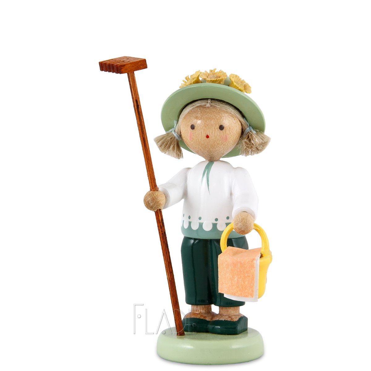 Einen Holzrechen braucht man, um Heu zu wenden. Eine Wiese wird gemäht und das Gras getrocknet. Und damit es rundherum trocken werden kann, muss man es wenden. Wer den ganzen Tag in der Sonne ist, braucht unbedingt einen Hut mit Krempe und einen Korb mit Proviant. So gelingen Sommertage im Garten und auf der Wiese.