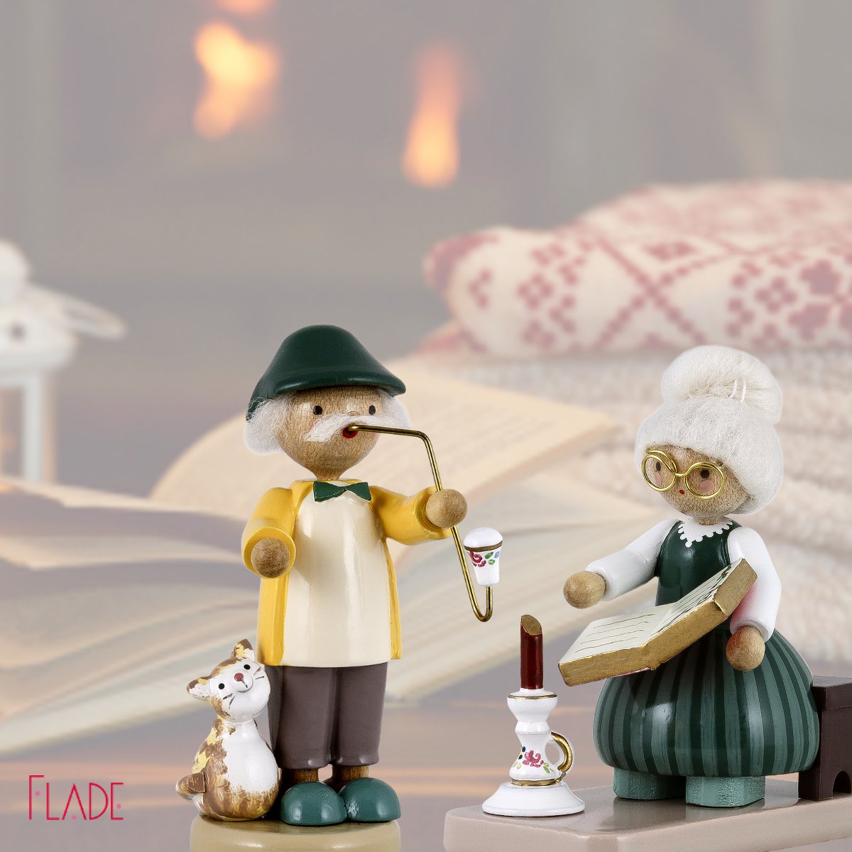 Großmütter mit weißem Haar und Dutt gibt es kaum noch, oder vielleicht wieder? Aber Omas mit Brille auf der Nase und Märchenbuch in der Hand, die gibt es. Ich bin selber eine. Ich lese so gerne vor. Schon bei meinen Kindern habe ich das gemacht und in den letzten Jahren ganz oft in Kindergärten und Schulen. Die Figur “Großmutters Märchenstunde” ist ein Entwurf meiner Eltern und schon ziemlich alt. Wie schön, dass sie eine Geschichte erzählt, die nie unmodern wird.