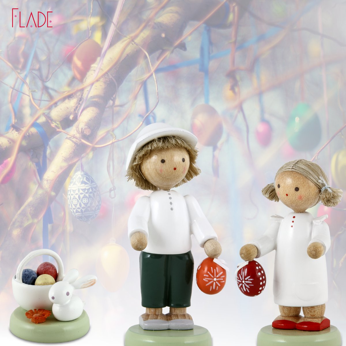 “Kleinigkeiten machen die Summe des Lebens aus”, meint Charles Dickens. Er musste es wissen, denn seine Erzählungen sind reich an beschriebenen Kleinigkeiten. Mit unseren Miniaturen ist es ebenso. Stellt man ein kleines Blumenkörbchen zu einem FLADE Kind, wird es zur Blumenfee. Das Häschen mit Eierkörbchen lässt Osterstimmung aufkommen.