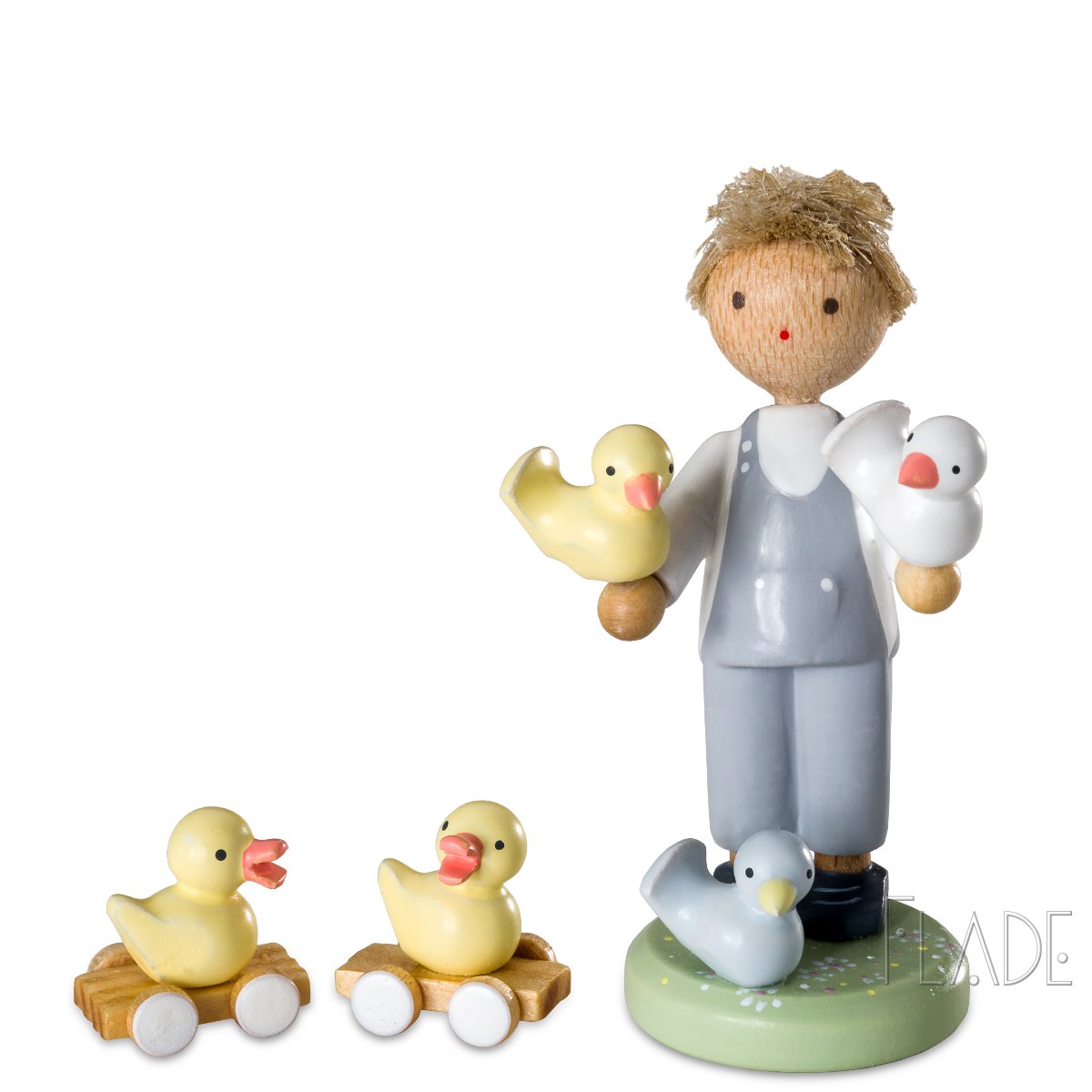 Die Entchen auf Räderbrett gehören zu den beliebtesten Accessoires. Neu ist die zarte Farbigkeit, die wunderbar zu der Frühlingsszenerie passt.
