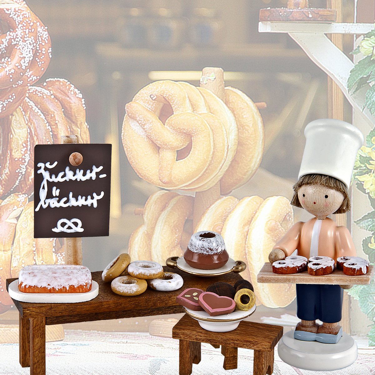 Ein Bäcker mit Brezeln. Bestimmt denken da die meisten von Euch an Laugenbrezeln, die haben ja inzwischen jeden Bäckerladen erobert. Mein kleines Bäckerlein trägt aber süße Brezeln auf seinem Brett. Solche, die wie …