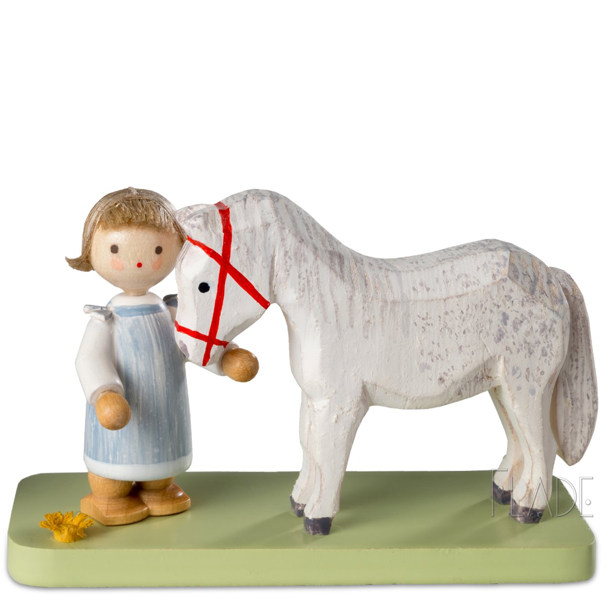 Das Mädchen mit Pferdchen gehört zu einer Serie aus mehreren Flachshaarkindern. “Hätt ich ein Lebelein…”, sagt das kleine Mädchen in Eva Strittmatters Buch “Brüderchen Vierbein”. Das Mädchen ist einsam, und es wünscht sich einen Freund. Ihr begegnet ein Pony, das seinem Herrn davon gelaufen ist. Das Mädchen gibt dem Pferdchen Zucker hofft, nun einen Spielgefährten zu haben. Ob das Pony bei ihr bleiben kann?