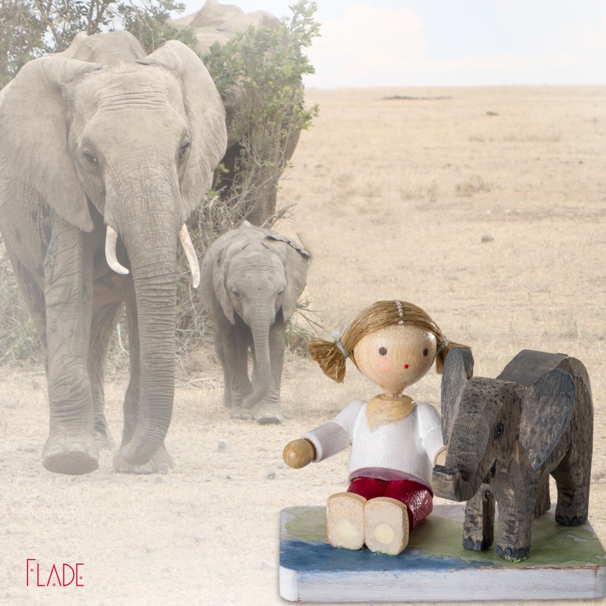 Dieses Erlebnis war der Ausgangspunkt für eine Serie mit Wildtieren. Dem Elefantenbabysagt das Mädchen wohl gerade: Komm, hier bist Du sicher, hier kannst Du trinken.