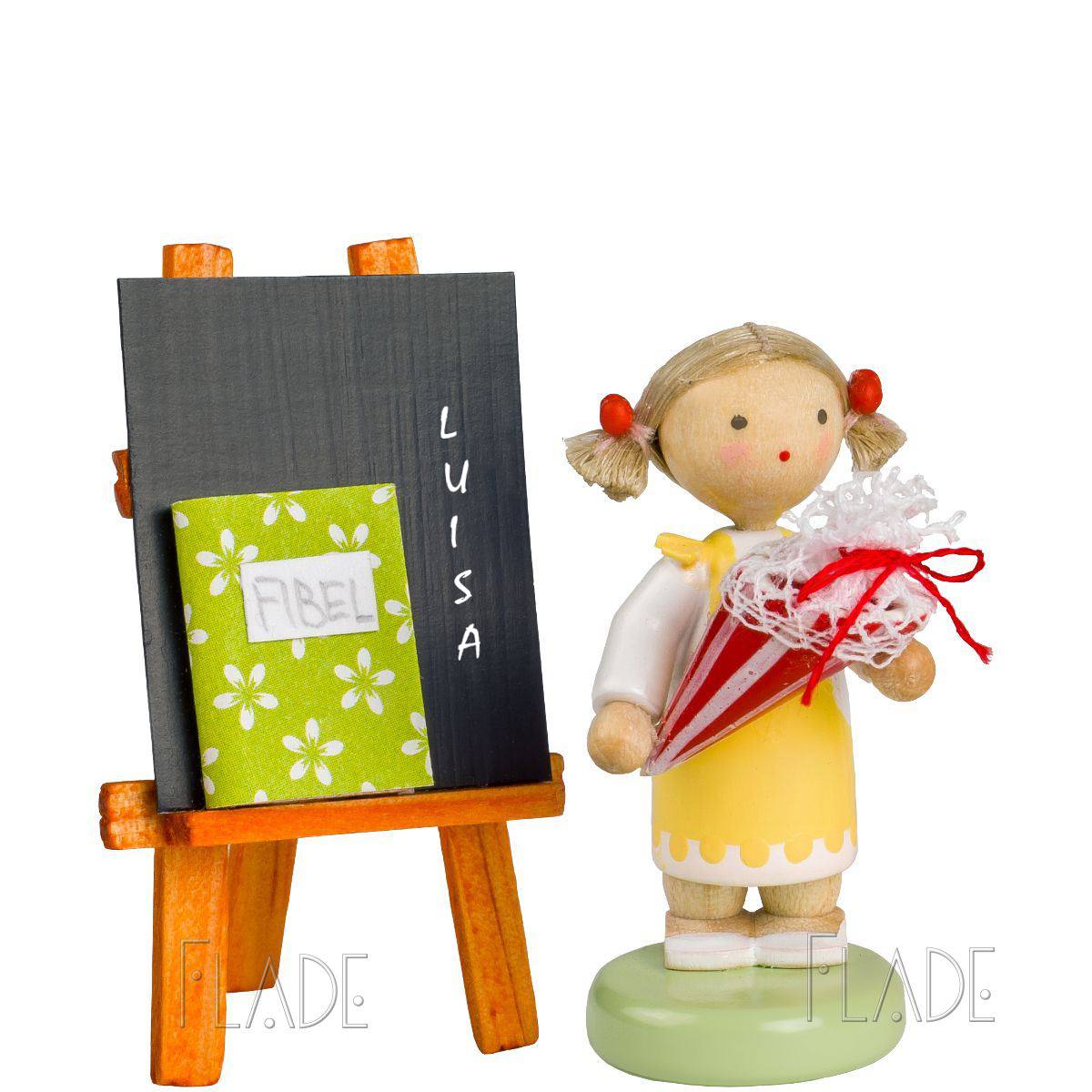 „Hurra, ich bin ein Schulkind.“ Der Schulanfang ist ein sehr herbeigesehnter erster Höhepunkt im Leben eines Kindes. Der Schulanfänger bekommt seine große Schultüte mit Süßigkeiten. Immer besteht auch der Wunsch, dem Kind etwas „für’s ganze Leben“ zu schenken, als Erinnerung an diesen besonderen Tag. Dafür entstanden 2015 das Mädchen und der Junge mit Schultüte, Tafel und Fibel.