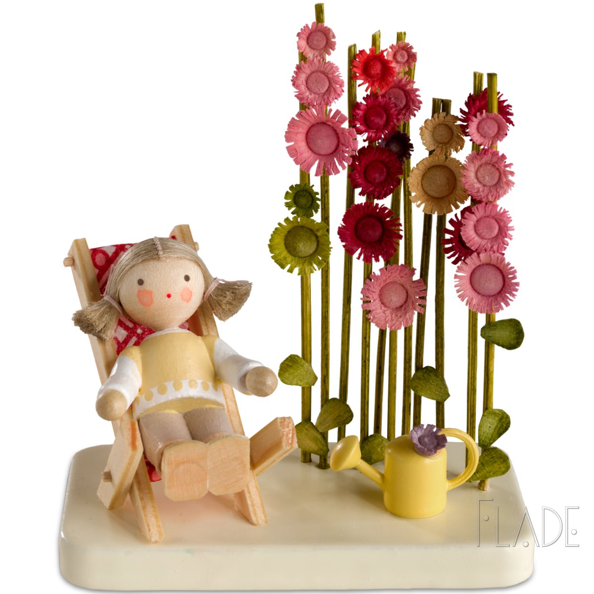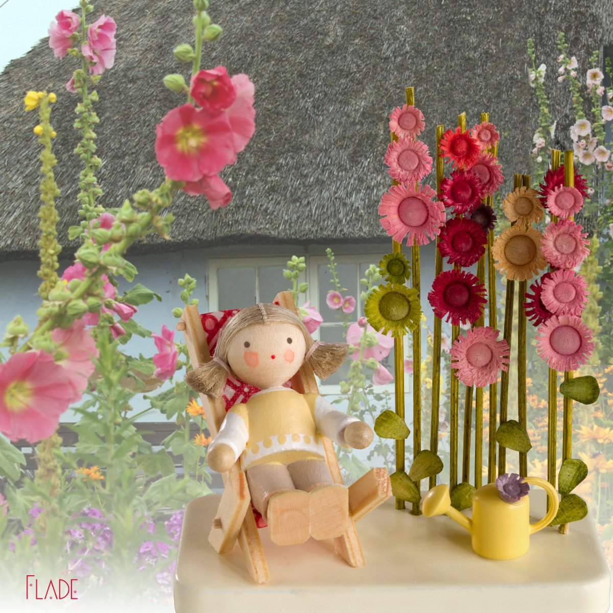 Das kleine FLADE-Mädchen liegt im Liegestuhl, nimmt sich eine Auszeit vom Trubel und guckt Löcher in die Luft. Stockrosen gibt es hier leider keine, sie sind Ausdruck meiner Sehnsucht nach dem Norden. Denn dort wachsen sie wie Unkraut vor den Häusern und zwischen den Pflastersteinen. Was für eine Farbenpracht!