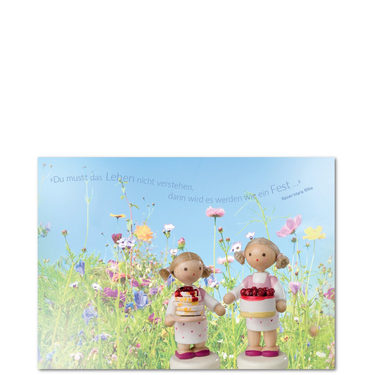 Mit den Jahresfiguren der letzten sieben Jahre haben wir eine zauberhafte Postkartenserie gestaltet. Die Idee dazu hatte eine Kundin, die jedes Jahr eine stattliche Anzahl unserer Weihnachtspostkarten kauft. Sie würde doch so gerne auch Geburtstagsgrüße verschicken, wenn wir eine Postkarte für solche Anlässe hätten. Voilá, hier sind gleich sieben…
