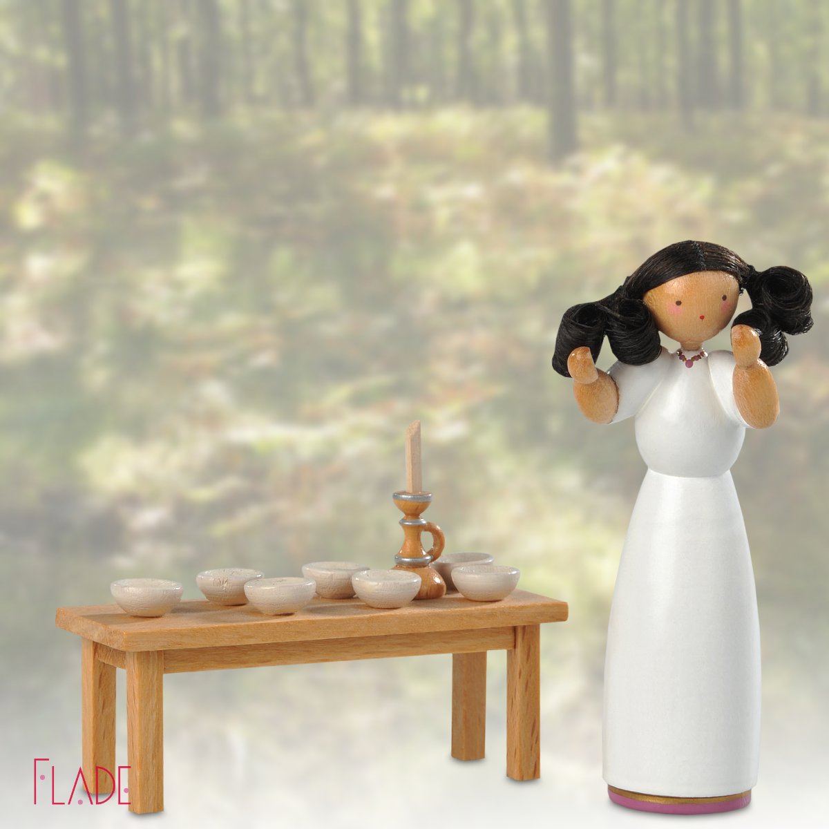 1950 begannen meine Eltern Traute und Helmut Flade, Entwürfe für die verschiedensten Unternehmen im Erzgebirge zu fertigen. Die Märchen- und Wilhelm-Busch-Serie ist eine dieser Arbeiten. Mit dieser Serie begründete meine Mutter die Kunst der Frisurenbildnerei für figürliche Szenerien, die zum wesentlichsten Merkmal der Flade-Figuren geworden ist. Königin, Schneewittchen und die sieben Zwerge wurden in kleiner Serie von meinen Eltern persönlich nach Vorbild der Ursprungsmuster neu aufgelegt.