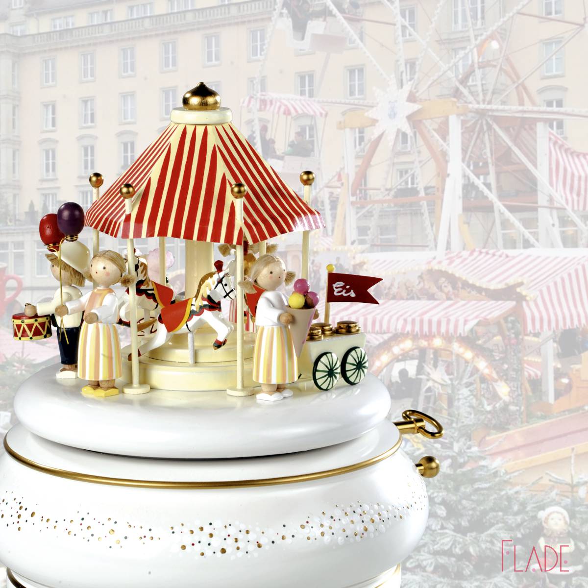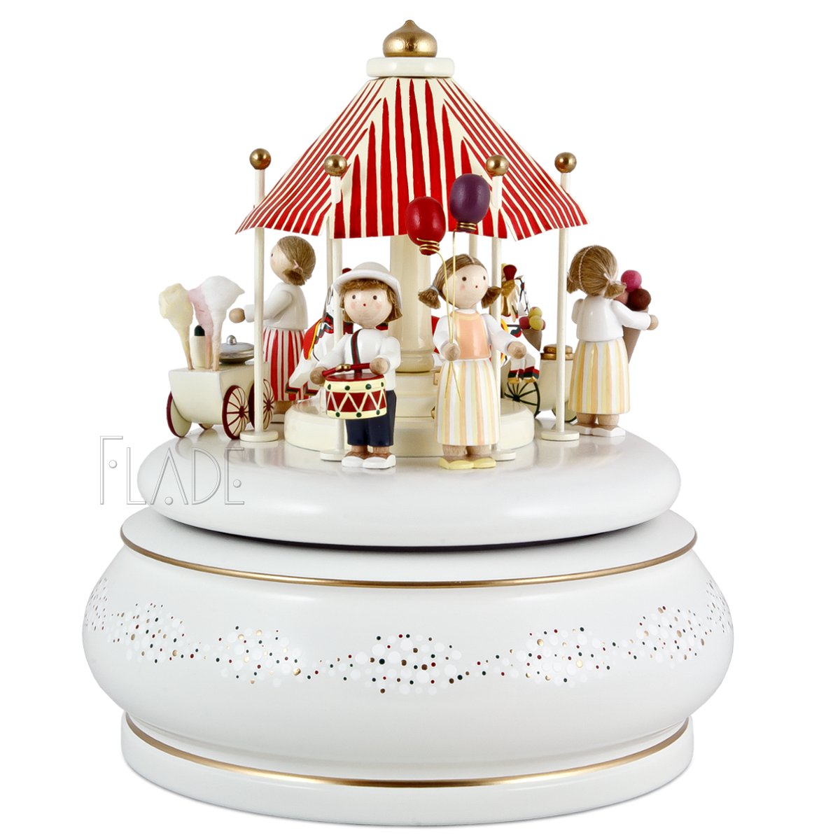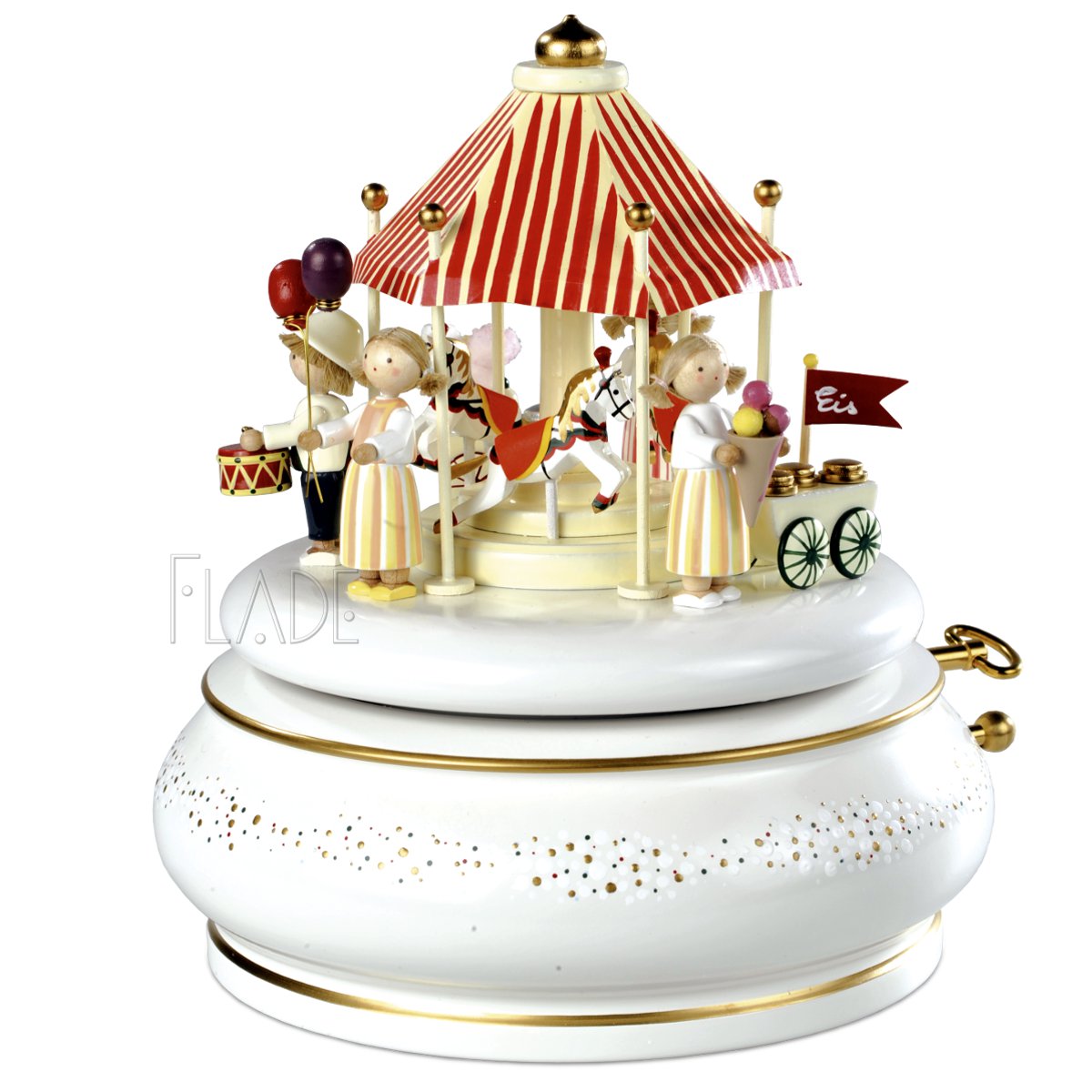 Auf meinem Schreibtisch steht ein Foto. Ein kleiner blonder Junge sitzt auf einem weißen Karussellpferdchen. Es ist mein Sohn Sebastian, drei Jahre war er da alt. Aber manchmal sieht man sie auch heute noch, die nostalgischen Kinderkarussells mit Pferdchen. “Reitschule” wurden sie genannt, und bis heute ziehen sie die Kinder magisch an. Es gibt Eis und Zuckerwatte, Luftballons steigen in den blauen Sommerhimmel. Ich habe für das Kinderfest eine fröhliche Melodie ausgesucht, die “Bacarole” von Offenbach.