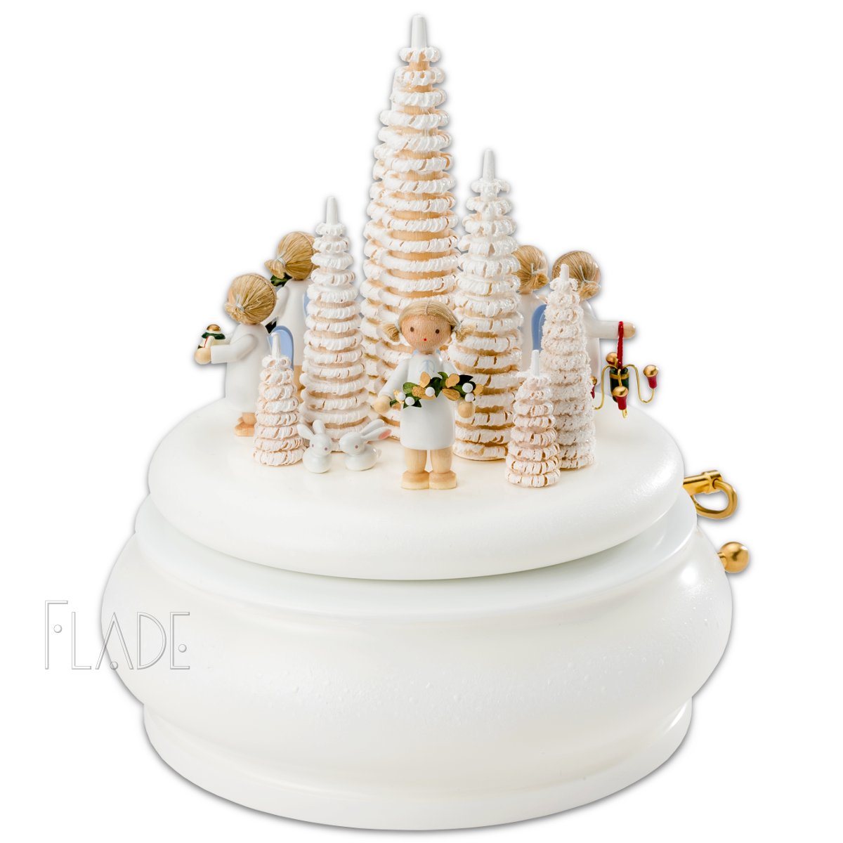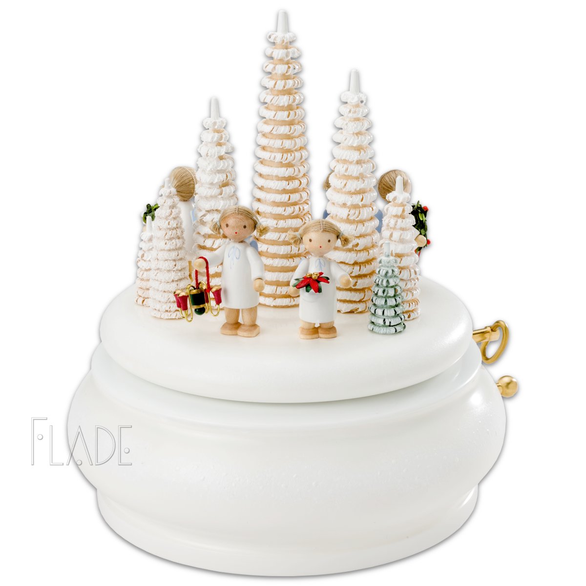 Es erfüllt sich mit dieser Spieldose aber auch ein immer wieder geäußerter Wunsch unserer Sammler. Anstatt der fünf von mir ausgewählten Engelchen dürfen auch fünf andere Flachshaarengel darauf ihren Platz bekommen. Zum ersten Mal haben Sie also die Möglichkeit, Ihr ganz persönliches Stück bei uns in Auftrag zu geben. Dafür müssten Sie uns bitte per mail kontaktieren.
