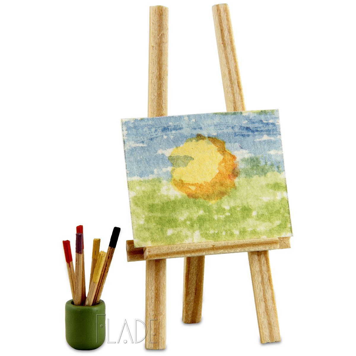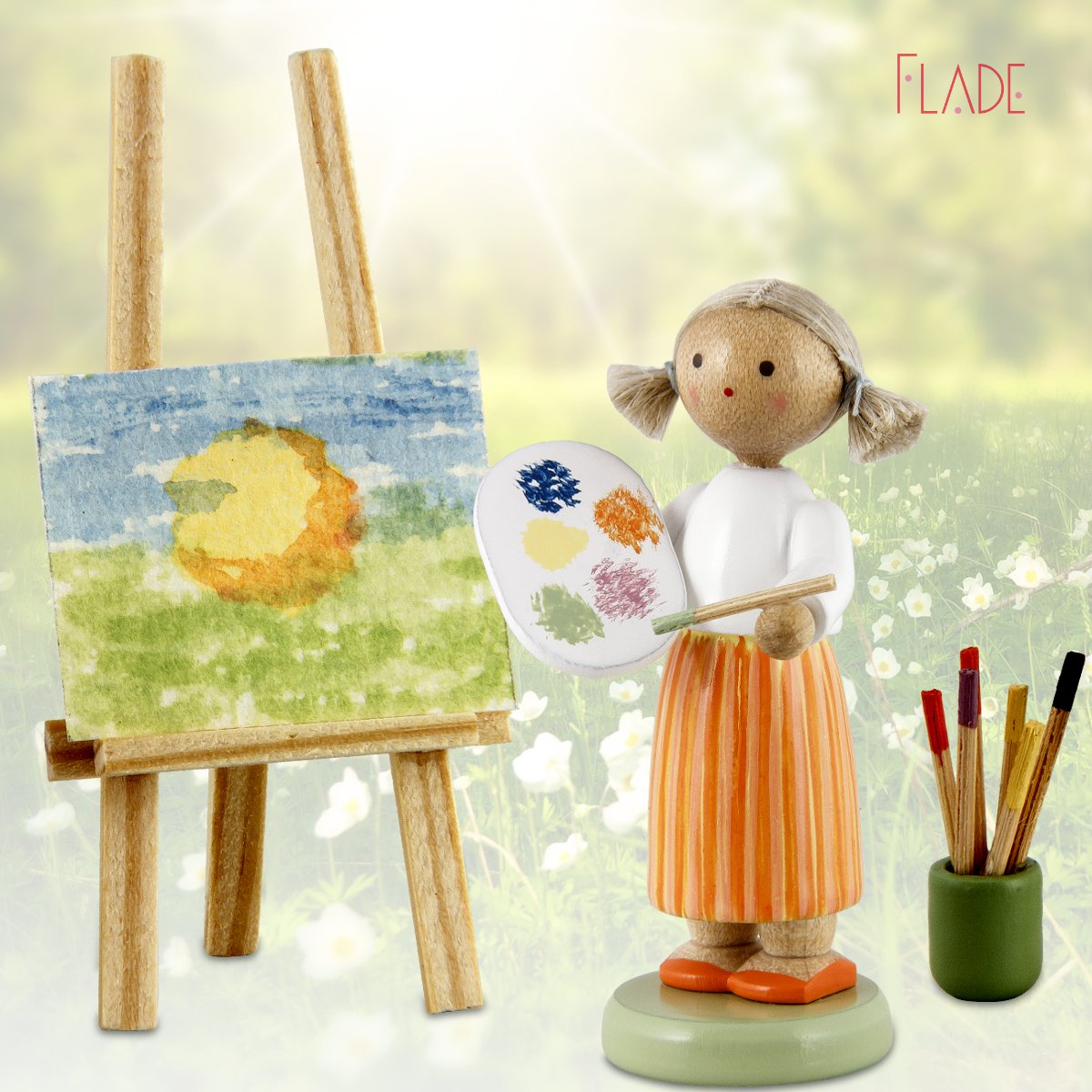 Staffelei uns Pinselköcher sind zusammen mit dem Mädchen mit Farbpalette entstanden. Eine Sehnsucht liegt dem Ensemble zugrunde, die Sehnsucht, malen zu können. Es gibt viele Menschen, die das tun. Für all die wäre die kleine Staffelei doch ein schönes Geschenk…