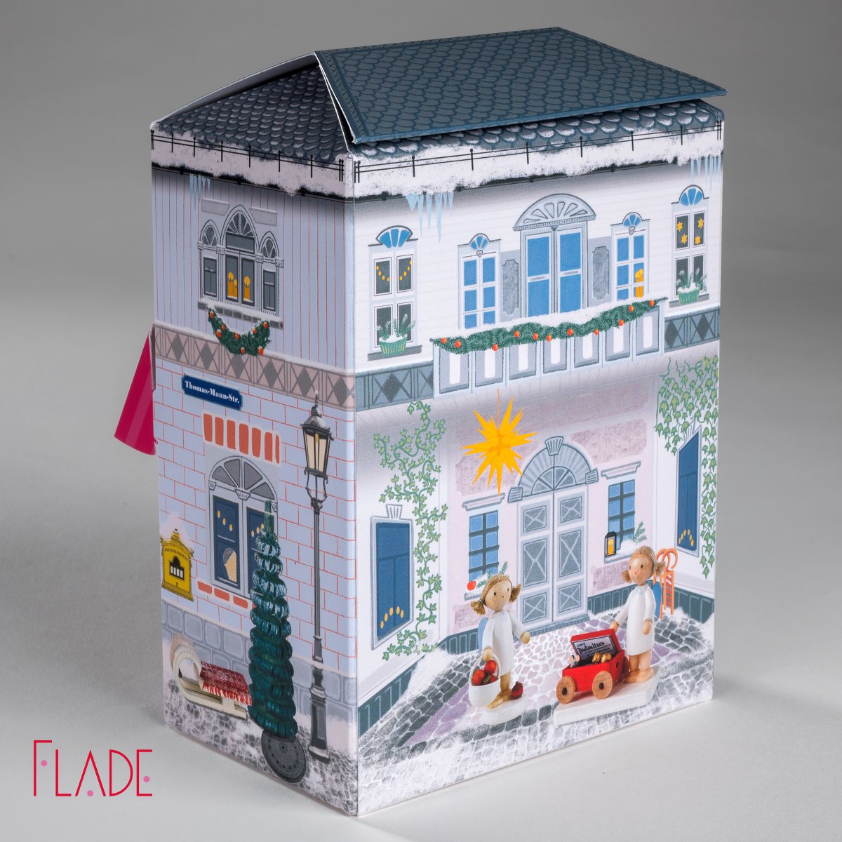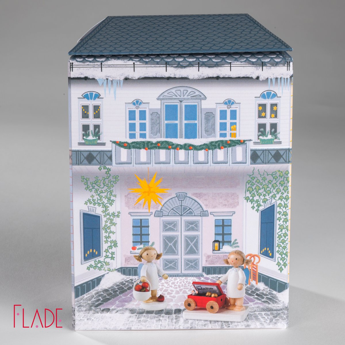 Winterzeit ist Naschzeit und Zeit für Geschenke. Also haben wir unser hübsches Haus nun auch weihnachtlich und winterlich gestaltet. Gefüllt ist es mit einem über 100 Jahre alten Gebäck aus der Konditorei Gleisberg. Die “Biber” sind mit Persipan gefüllte Lebkuchen. Ganz was Feines! Was ist Persipan? Persipan ist aus Aprikosenkernen gemacht, ähnlich dem Marzipan, das aber aus Mandeln hergestellt ist, nur viiiiel besser! Feiner und fruchtiger, eine Delikatesse! Gefüllt mit Leckereien ist das “Süße Haus” ein wunderbares Geschenk für liebe Menschen. Und wenn der Inhalt aufgefuttert ist, bleibt die Schachtel übrig als Hintergrund für Figuren oder Marktstände.