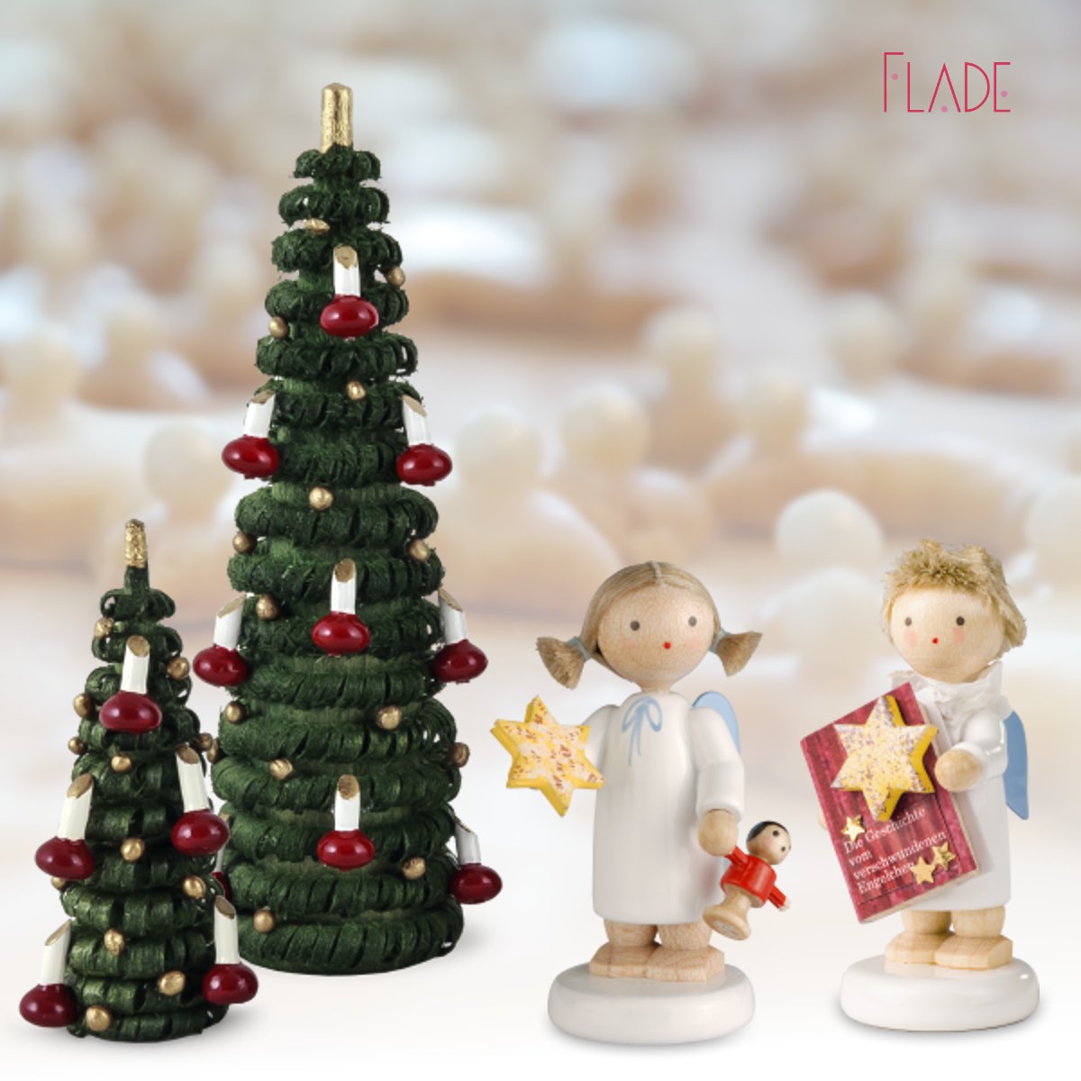 Eine grüne Tanne, geschmückt mit Kerzen – das ist wohl das Symbol schlechthin für ein stimmungsvolles Weihnachtsfest. Also haben wir unser gedrechseltes Lockenbäumchen geschmückt, damit es den FLADE Kindern und Engelchen den Weihnachtszauber in die Stube holt. Ob klein, mittel oder ganz groß – unser Weihnachtsbaum ist doch eine Augenweide.