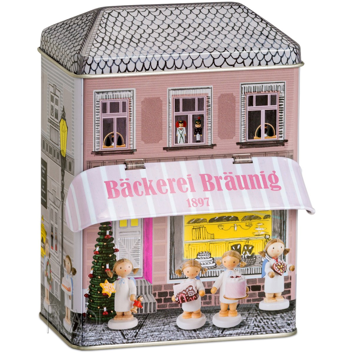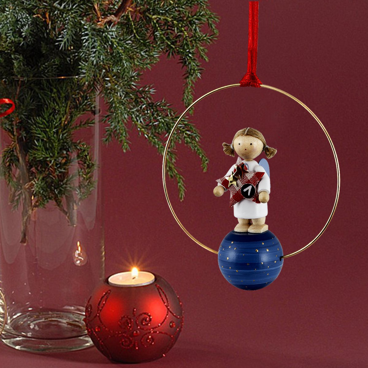 Der Engel trägt einen Stern in der Hand und glänzt und leuchtet festlich im Fenster oder an einem Zweig.